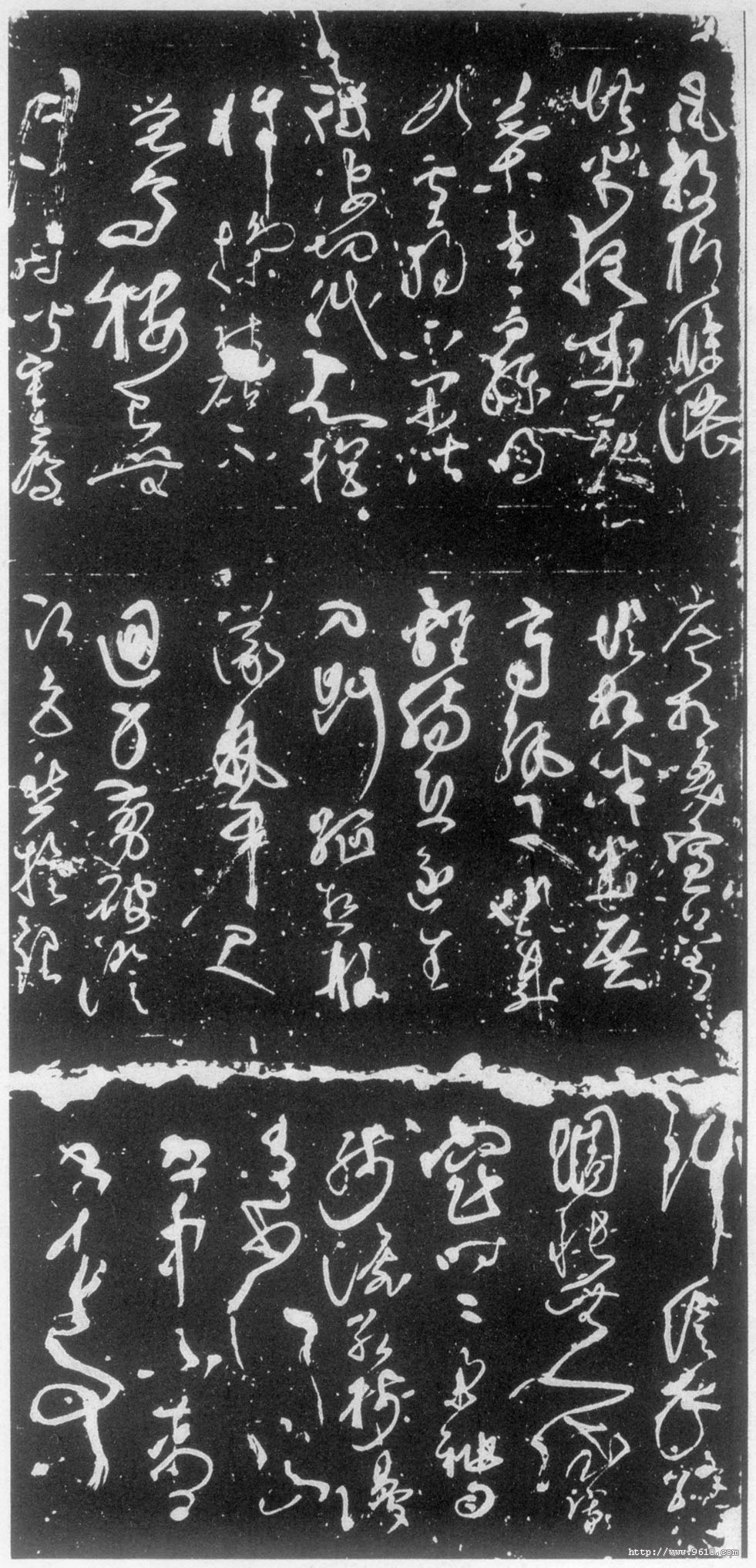 原石竖方形,两面分三截刻。草书内容为《寄边衣诗》和《入洛诗》,碑阴下段一并摹刻有张旭《肚痛帖》。