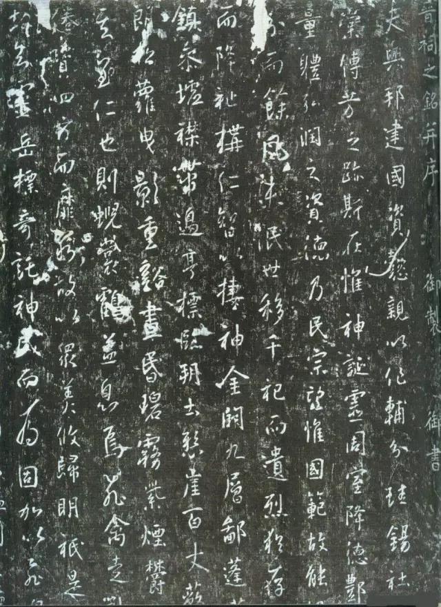《晋祠铭》全称《晋祠之铭并序碑》,此碑系唐太宗李世民撰文并书丹的碑刻,创作于唐代贞观二十年(646年),书体为行书。此碑现收藏于山西省太原市晋祠内唐叔祠山门之左侧的唐碑亭(又称贞观宝翰亭)内,亭内立有两通石碑,一座为唐太宗亲书原碑,另一座为清乾隆三十七年(1772年)依照旧拓片摹刻的复制碑。《晋祠铭》碑高195厘米,宽122厘米,厚26厘米。碑额高108厘米,上刻“贞观廿年正月廿六日”九字,用“飞白”笔法写成。碑额左右各雕螭首一对,并头下垂,为唐代碑额的特点。《晋祠铭》全文总共1203字,28行,每行44至50字不等。碑的四面都刻有文字。碑阳面的文字记唐立国后的文治武功并歌颂唐初的治国方略。碑阴刻有长孙无忌等功臣的姓名。碑的左右两侧刻有宋朝人游览时书勒上石的文字。《晋祠铭》开创了行书上碑之先河,被后人誉为仅次于王羲之《兰亭序》的行书杰作。* * *晋祠之铭并序 御制 御书〔行1〕夫兴邦建国,资懿亲以作畏;分圭锡社,实茂德之攸居。非亲无以隆基,非德无以启化。是知功侔分陕,奕叶之庆弥彰;道洽留〔行2〕棠,传芳之迹斯在。惟神诞灵周室,降德酆都;疏派天潢,分枝璇极。经仁纬义,履顺居贞。揭日月以为躬丽高明之质;括沧溟而为〔行3〕量体宏润之资。德乃民宗,望惟国范。故能协隆鼎祚,赞七百之洪基;光启维城,开一匡之霸业。既而今古革运,舟壑潜迁。虽地尽三〔行4〕分,而馀风未泯;世移千祀,而遗烈犹存。玄化旷而无名,神理幽而靡究。故歆祠利祷,若存若亡;汾世匡民,如显如晦。临汾川〔行5〕而降祉,构仁智以栖神。金阙九层,鄙蓬莱之已陋;玉楼干仞,耻昆阆之非奇。落月低于桂筵,流星起于珠树。若夫崇山亘峙,作〔行6〕镇参墟;襟带边亭,标临朔土。悬崖百丈,蔽日亏红;绝岭万寻,横天耸翠。霞无机而散锦,峰非水而开莲。石镜流辉,孤岩宵〔行7〕朗;松萝曳影,重溪昼昏。碧雾紫烟,郁古今之色;玄霜降雪,皎冬夏之光。其施惠也,刚和凤溽露是生,油云膏雨斯起〔行8〕。其至仁也,则霓裳鹤盖息焉,飞禽走兽依焉。其刚节也,则治乱不改其形,寒暑莫移其操。其大量也,则育万物而不〔行9〕倦,资四方而靡穷。故以众美攸归,明祗是宅。岂如罗浮之岛,拔岭南迁;舞阳之山,移基北转,以夫挺秀之质,而无居当之资〔行10〕。故知灵岳标奇,托神威而为固。加以飞泉涌砌,激石分湍。萦氛雾而终清,有英俊之贞操;住方圆以成像,体圣贤之屈伸〔行11〕。日注不穷,类芳猷之五绝;年倾不溢,同上德之诫盈。阴涧怀冰,春留冬镜;阳岩引溜,冬结春苔。非疏勒之可方,岂瀑布之能拟。至〔行12〕如浊泾清渭,岁岁同流;碧海黄河,时时一变。以夫括地之纪,横天之源,不能泽其常,莫能殊其操。信乃兹泉表异,带仙宇而〔行13〕为珍;仰神居之肃清,想徽音其如在。是以朱轮华毂,接轸于坛衢;玉币丰粢,连箱于庙阙。氤氲灵气,仰之而弥高〔行14〕;昭晰神光,望之而逾显。潜通玄化,不爽于锱珠;感应明征,有逾于影响。惟贤是辅,非黍稷之力馨;唯德是依,岂筐篚〔行15〕之为惠。昔有随昏季,纲纪崩沦,四海腾波,三光戢曜。先皇袭千龄之徽号,膺八百之先期,用竭诚心,以祈嘉福。爰初鞠〔行16〕旅,发迹神邦。举风电以长驱,笼天地而遐卷。一戎大定,六合为家。虽膺篆受图,彰于天命;而克昌洪业,实赖神功。故知〔行17〕茫茫万顷,必俟云雨之泽;巍巍五岳,必延尘壤之资。虽九穗登年,由乎播种;千录耸日,本藉崇基。然则不雨不云,则有炎枯〔行18〕之害;非尘非壤,则有倾覆之忧。虽立本于自然,亦成功而假助,岂大宝之独运,不资灵福者乎!故无言不酬,无德不报〔行19〕。所以巡往迹,赛洪恩,临汾水而濯心,仰灵坛而肃志。若夫照车十二,连城三五,币帛云委,珍羞山积,此乃庸鄙是享,恐非明神〔行20〕所歆。正空竭丽水之金,勒芳猷于不朽;尽荆山之玉,镌美德于无穷。召彼雨师,弘兹惠泽;命斯风伯,扬此清尘。使地祗仰〔行21〕德于金门,山灵受化于玄阙。括九仙而警卫,拥百神以前驱。俾洪威振于六幽,令誉光于千载。岂若高唐之庙,空号朝云;陈〔行22〕仓之祠,虚传夜影!式刊芳烈,乃作铭云:〔行23〕赫赫宗周,明明哲辅。诞天降德,承文继武。启庆留名,剪桐颁土。逸翮孤映,清飚自举。藩屏维宁,邦家攸序。传晖竹帛,降〔行24〕灵汾晋。惟德是辅,惟贤是顺。不罚而威,不言而信。玄化潜流,洪恩遐振。沉沉清庙,肃肃灵坛。松低羽盖,云挂仙冠。雾筵霄〔行25〕碧,霞帐晨丹。户花冬桂,庭芳夏兰。代移神久,地古林残。泉涌湍萦,泻砌分庭。非搅可浊,非澄自清。地斜文直,涧曲流平。翻霞〔行26〕散锦,倒日澄明。冰开一镜,风激千声。既瞻清洁,载想忠贞。濯兹尘秽,莹此心灵。猗欤胜地,伟哉灵异。日月有穷,英声不匮。天〔行27〕地可极,神威靡坠。万代千龄,芳猷永嗣。 〔行28〕