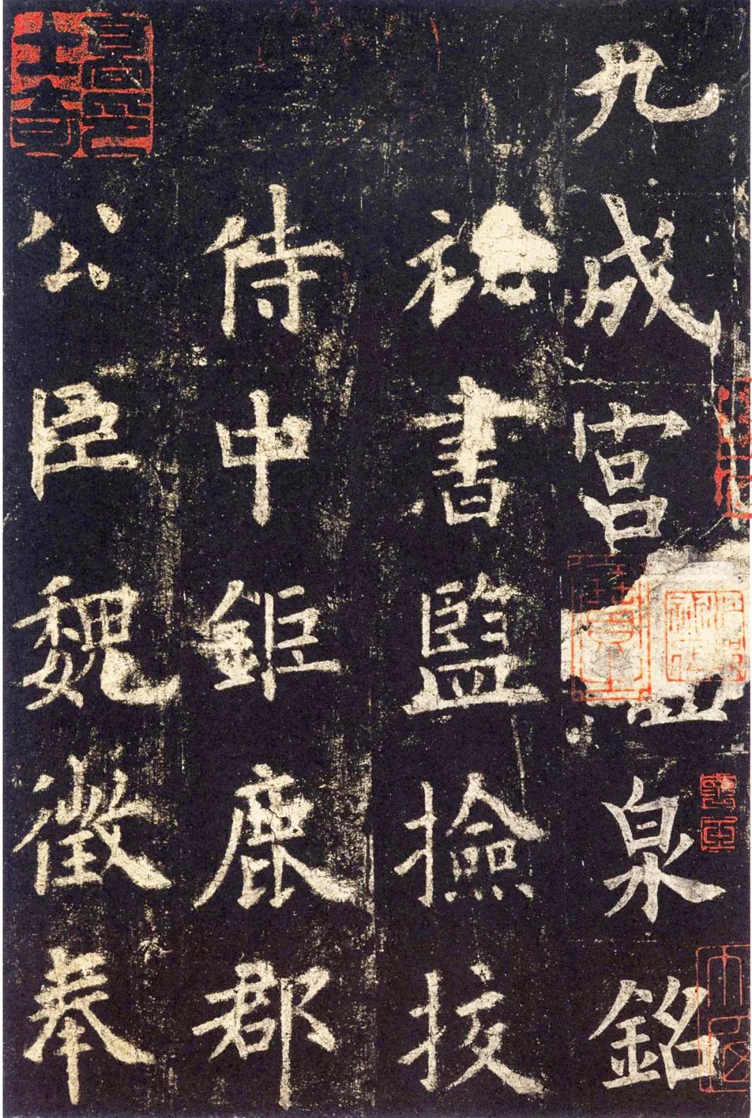 《九成宫醴泉铭》是唐贞观六年(632)由魏征撰文、书法家欧阳询书丹而成的楷书书法作品(碑刻者不可考)。现存于陕西麟游县碑亭景区。《九成宫醴泉铭》叙述了“九成宫”的来历和其建筑的雄伟壮观,歌颂了唐太宗的武功文治和节俭精神,介绍了宫城内发现醴泉的经过,并刊引典籍说明醴泉的出现是由于“天子令德”所致,最后提出“居高思坠,持满戒盈”的谏诤之言。 《九成宫醴泉铭》结体修长,中宫收紧,四边开张,左敛右纵,化险为夷。字形随势赋形,左右结构作相背之势,上下结构上窄下宽,间架开阔稳定,气象庄严。其布白匀整,字距、行距疏朗,为九宫最准者,全碑血脉畅通,气韵萧然。 《九成宫醴泉铭》是欧阳询晚年经意之作,历来为学书者推崇,视为楷书正宗,被后世誉为“天下第一楷书”或“天下第一正书”。
